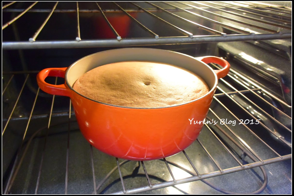 10. 倒扣因為鑄鐵鍋較重,因此重心不穩導致蛋糕壓了一邊。殘念!